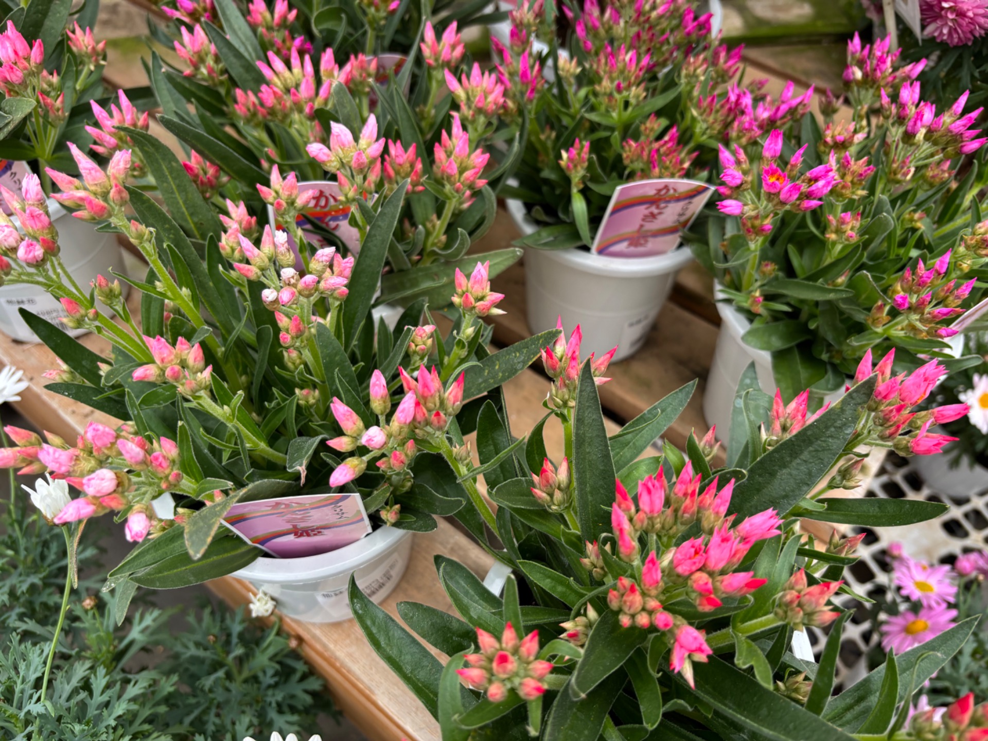 寄せ植えに可愛いローダンセマム「プリマリア」「マーキュリー」「プチマカロン」