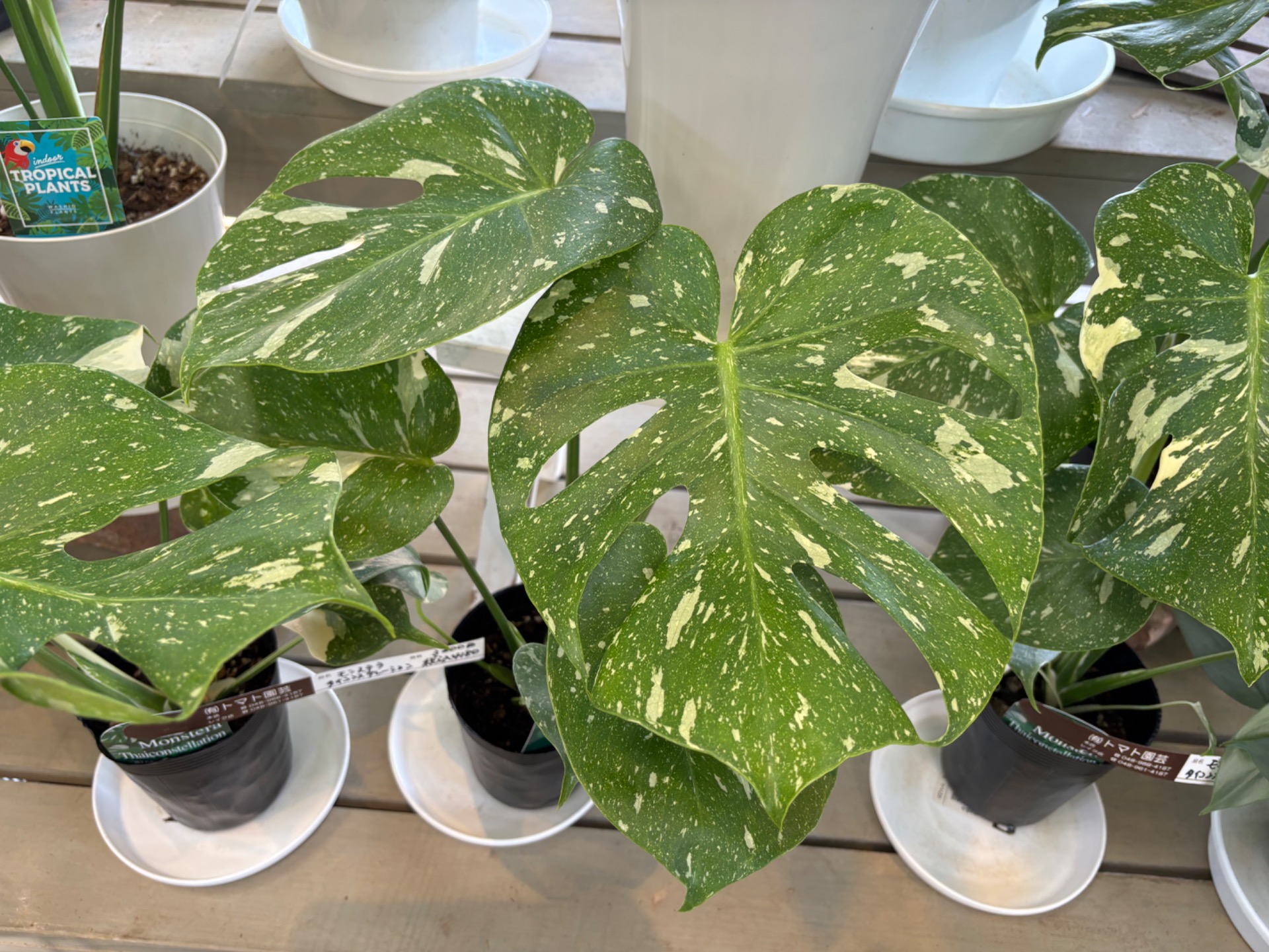 斑入りのモンステラ「タイコンステレーション」4寸ロングポット