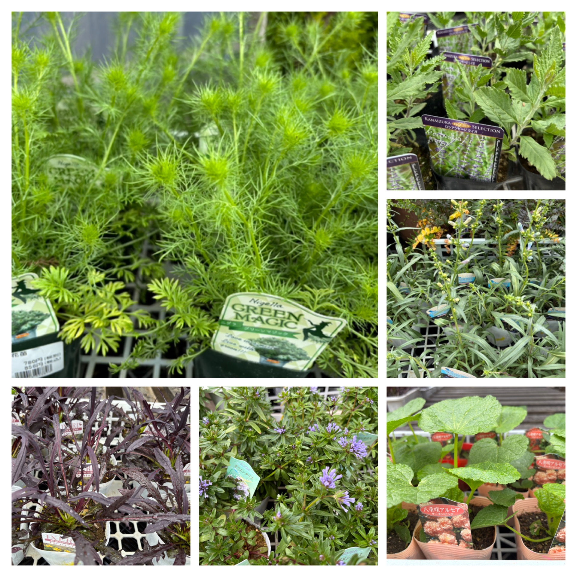 グリーンのニゲラ、カラス葉ニガナ、アルセアなど宿根草各種