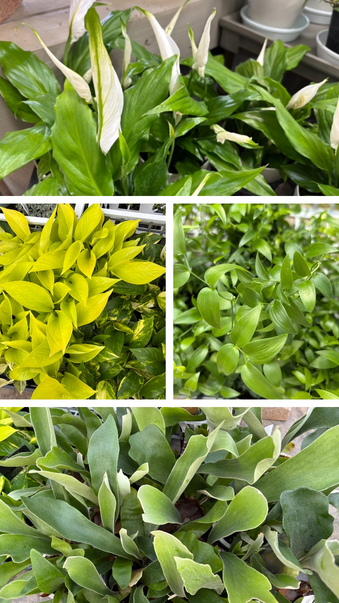 スパティフィラム,ポトス苗各種、アスパラスマイラックス、コウモリラン